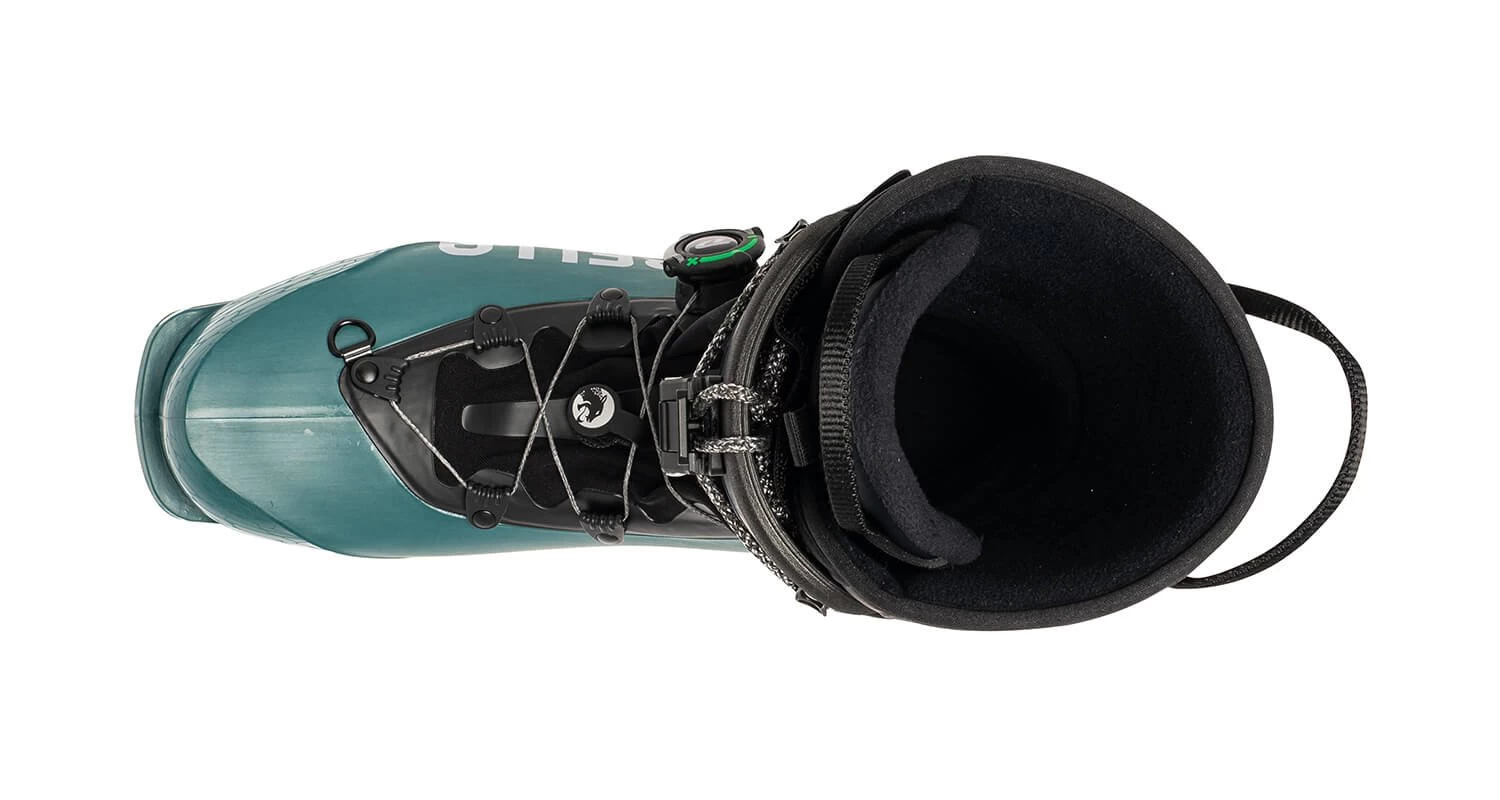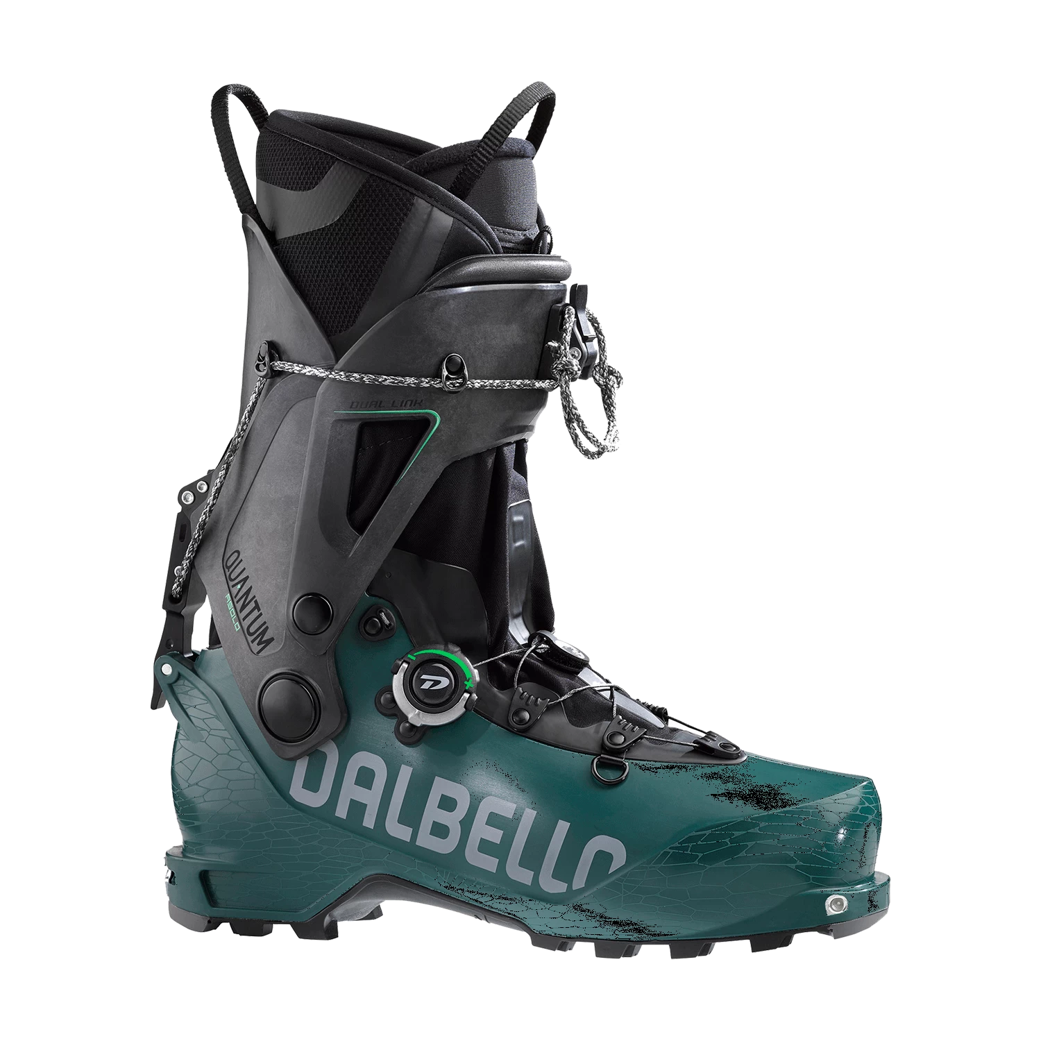 The Quantum Asolo is the revolutionary touring boot for ambitious and experienced tourers. A radical concept comprising a two-piece bonded shell structure and dual link cuff, made from rigid, fiberglass-reinforced polyamide and designed for classic, demanding tours. Despite the low weight of just 1,060 g (Mondo Point 26.5), the boot still offers legendary comfort on ascents and impressive performance on descents. High performance meets comfort! The secret behind the Quantum range lies in the innovative, two-piece shell and cuff structure with an anatomical fit. This enables the combination of a firm, rigid outer shell and a full-length sole plate while still offering great freedom of movement for climbs. Fiberglass-reinforced polyamide supports the construction’s rigidity. The low weight makes the climb easier while the rigid structure offers loss-free power transfer, outstanding performance, and great ski control on the descent. The two-piece dual link cuff enables a 65° range of movement and is securely locked with a non-stretch Dyneema cord so as to provide lateral stability. Above-average heel hold is guaranteed by the quick lacing system (QLS), which is adjusted by turning a wheel. The ultra-light, high-quality ID Touring liner can naturally be adapted to the shape of the foot. A profiled Vibram rocker sole with varying hardness offers good grip in the snow when walking and climbing plus smooth power transfer to the binding and ski.