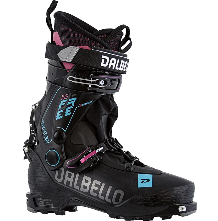 The Quantum Free 105 W is specifically designed for female skiers looking for a very versatile freetouring boot. It combines control and power transmition with smooth and comfortable hiking characteristics in a perfect way. The secret is its innovative, two piece shell and cuff construction that enables little weight, anatomical fit and high rigidity. Still, this stiffness does not effect the freedom of movement at all. Since the two-piece X dual link cuff allows more than a 65° range of movement making hiking easy and effortless! On descents the extended cuff ensures loss-free power transfer, great support and excellent ski control. The wide powerstrap and two easy to grab buckles for effective and smooth closure provide lateral stability. An improved mechanism allows more foreward lean and can very quickly be changed from hike to ride and vice versa. The exclusive women´s IF Touring Sport liner with medium density paddings and extra heel retention offers outstanding comfort and hold and can be adapted to the individual shape of the foot. A profiled Vibram dual density rocker sole offers good grip when walking and climbing plus smooth power transfer to the binding and ski.