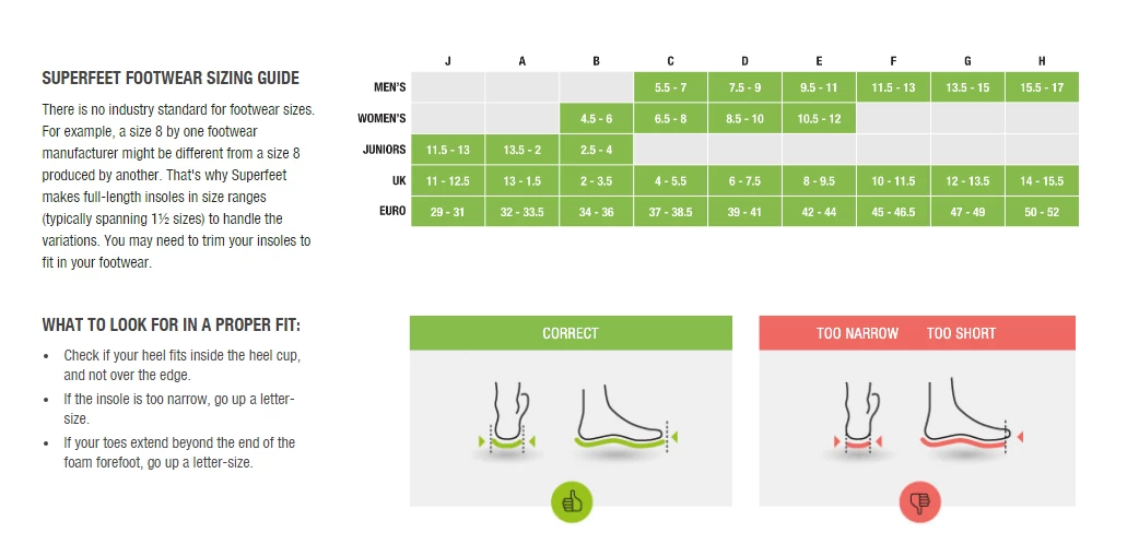 Start fast and finish strong on the heavy-duty shock absorption and legendary support that make the original Superfeet GREEN our most famous insole.