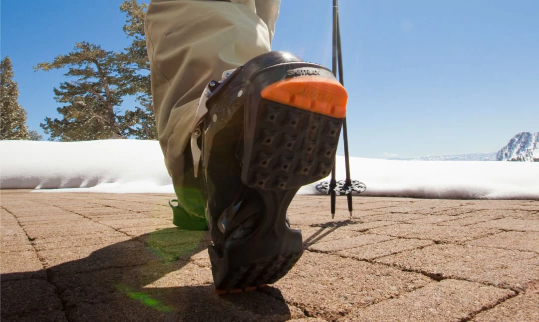 Yaktrax® Ski offer confidence and comfort while walking in your ski boots both on and off the mountain. Yaktrax Ski have a unique patent pending “Rocker Sole” design that promotes a natural walking motion. Made of durable rubber, Yaktrax Ski protect your ski boots from excessive wear while walking on solid ground. Yaktrax Ski also improve traction on snow and ice with the unique, rounded design of the bottom tread that does not pack snow.